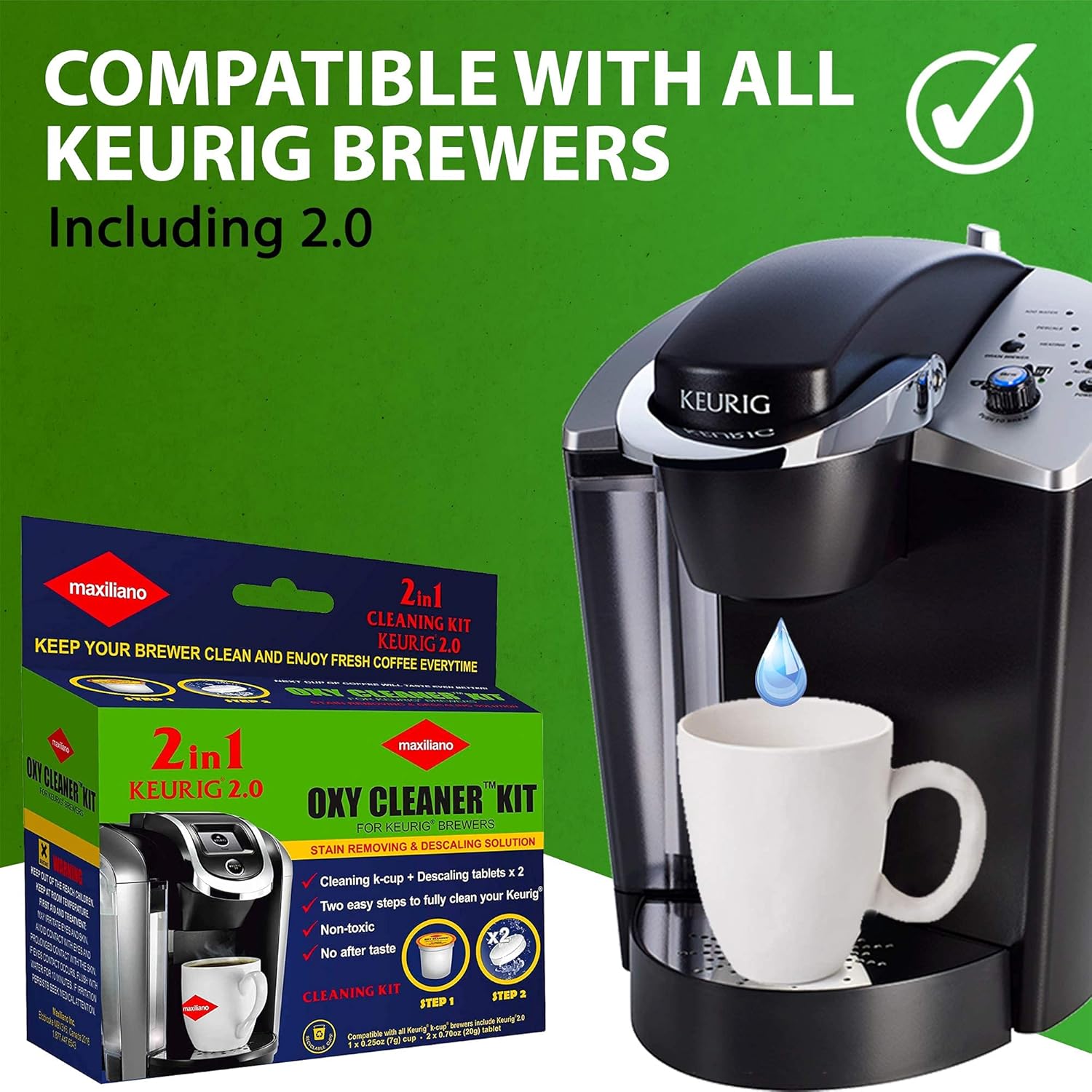 Amazon Com Maxiliano Oxy Cleaner Kit 2 In 1 Professional Descaling For All K Cup Keurig 2 0 Brewers Biodegradable Full Cycle Cleaning And Descaler Solution Kitchen Dining
